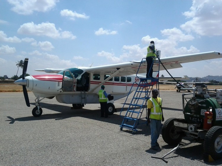 Refueling stop i Dodoma paa vei fra Iringa til Arusha. Flyr i dag tre vann- og jordbruks-eksperter fra en amerikansk hjelpeorganisasjon tilknyttet den lutherske kirken. I samarbeid med kirken her i Tanzania driver de forskjellige vann- og jordbruksprosjekter i omraadet rundt Iringa i Sor-Tanzania. Har vaert hjemmefra siden Mandag og ser fram til aa komme hjem til de to jentene mine.