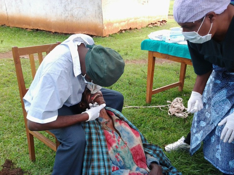I dag er jeg i Buger med klinikk-teamet. Jeg har ogsaa med en tannlege og assistent i dag og forrige maaned informerte vi om at tannlegen ville komme. Saa folk med tannverk av ymse slag staar naa i ko for aa faa hjelp. Tenk deg at du er 50 aar, aldri hatt en tannkost og aldri sett en tannlege. Det er tilfellet med flere av dagens pasienter.