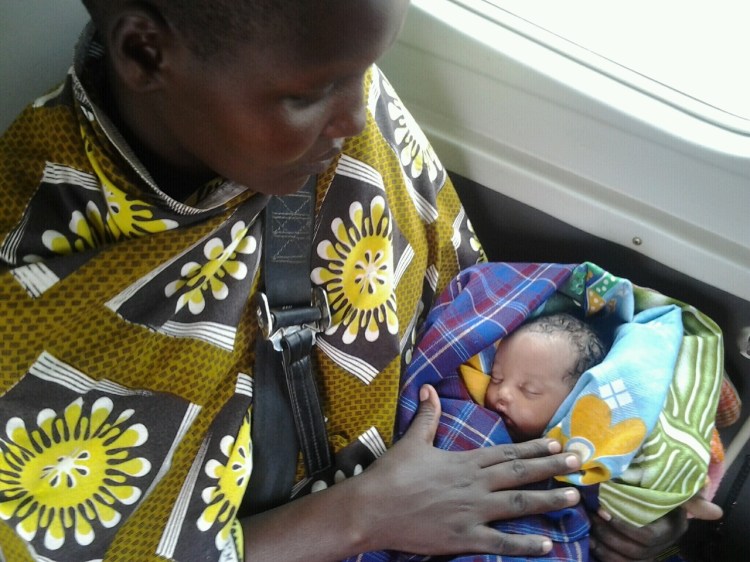Og her er to representanter for hovedmaalgruppen med disse flygningene, et barn og hennes mor. Denne lille frokenen kom litt for tidlig til verden saa jeg floy henne til Haydom saa hun kan faa den oppfolgningen hun trenger som prematur.